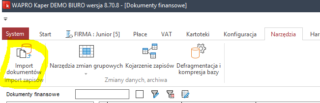 Import danych o fakturach do systemu WAPRO Księga Podatkowa