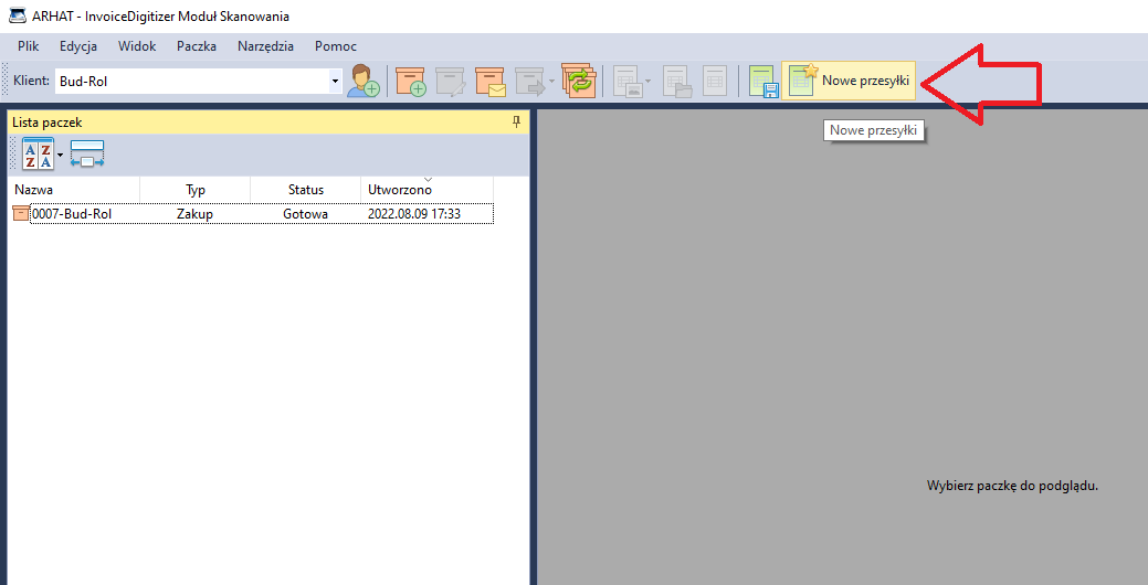 Nadesłane przez klientów dokumenty są dostępne w Module Skanowania systemu InvoiceDigitizer. W celu zarejestrowania dokumentów wykonaj następujące czynności: