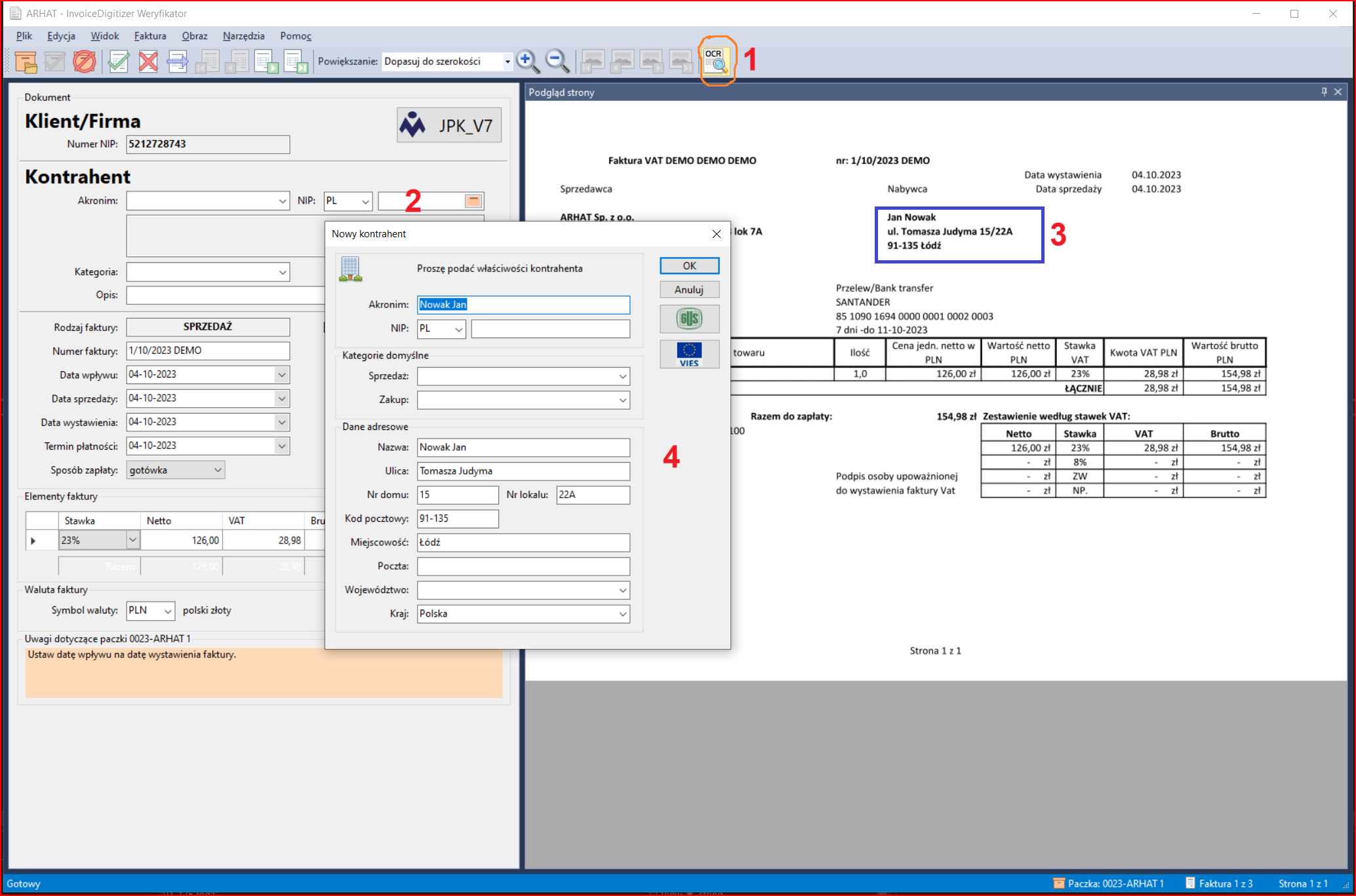 Wprowadzenie nowego kontrahenta bezpośrednio z obrazu OCR.