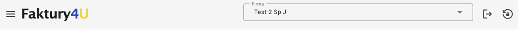 Na górze ekranu zawsze znajdziesz obszar zawierający przycisk włączania menu, odnośnik do ekranu głównego - Faktury4U nazwę swojego przedsiębiorstwa oraz przycisk do wylogowania i zmiany hasła.