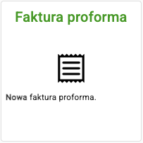 ![]() | Utwórz nową fakturę proforma. Po jej zatwierdzeniu będziesz mógł przesłać proformę do kontrahenta. Faktura proforma nie będzie rejestrowana w KSeF to raczej sposób na sformalizowanie umowy sprzedaży z kontrahentem i wskazanie mu kwot i rachunku do opłaty twojego świadczenia. Fakturę VAT wystawisz pewnie po otrzymaniu zapłaty lub zaliczki. |