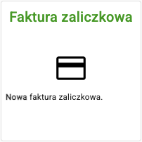 ![]() | Utwórz nową fakturę zaliczkową VAT. Jeżeli otrzymałeś zaliczkę i musisz wykazać ją fakturą to tędy droga. Podobnie jak w przypadku faktury VAT będziesz mógł zarejestrować ją w KSeF. |