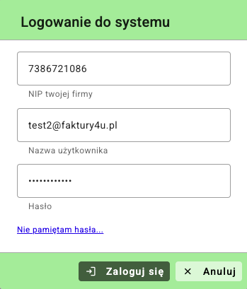 - Login – nazwę twojego konta w Faktury4U – często będzie to twój adres e-mail.