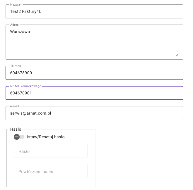 To będziesz mógł wprowadzić dane rejestrowe i kontaktowe, sprawdzić zgodę RODO, aktywować logowanie duetapowe.